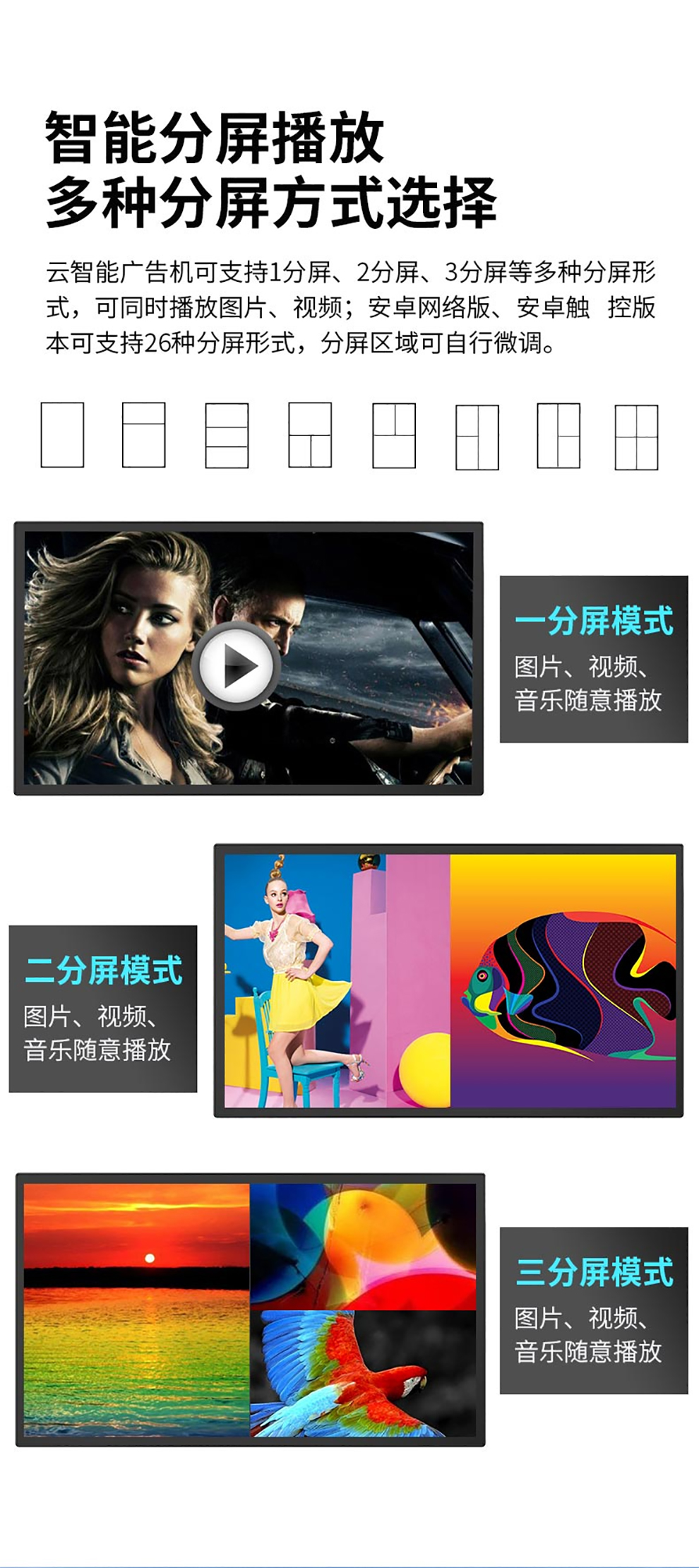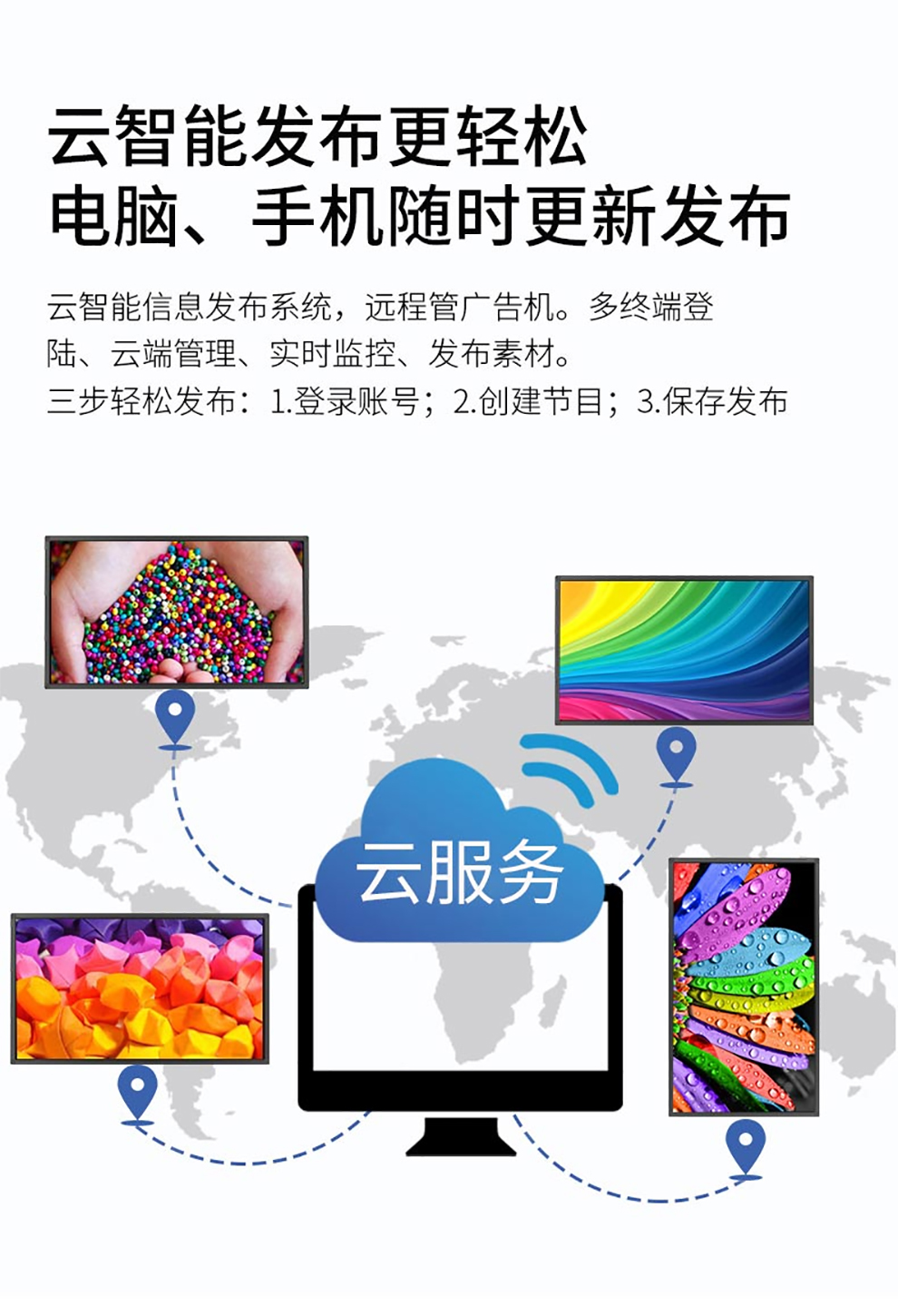 整合信息編輯、傳輸、播放以及終端管理、實時監(jiān)控為一體,完整的功能設置,滿足不同行業(yè)、不同需求的用戶。