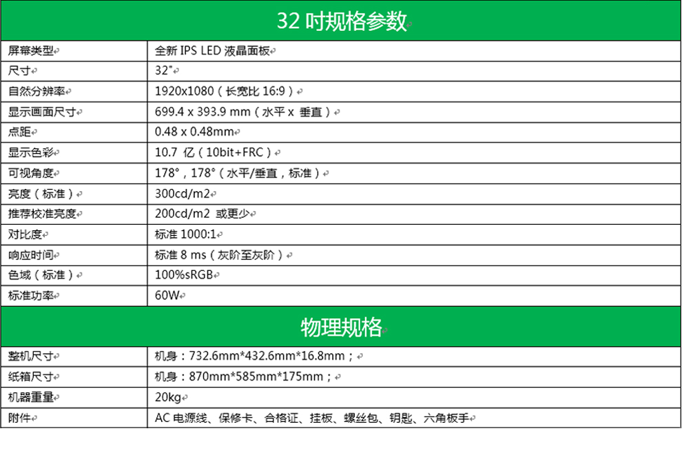 - 尺寸:32寸